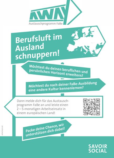 Bist Du bereit, Deinen beruflichen Weg weiterzuentwickeln und neue persönliche Erfahrungen zu sammeln? Reizt es Dich, nach Deiner FaBe-Ausbildung in eine andere Kultur einzutauchen? Dann ist das Austauschprogramm FaBe genau das Richtige für Dich: Verbringe 2–5 Monate in einem europäischen Land und sammle wertvolle Praxiserfahrung im Ausland. Nutze diese Gelegenheit – SAVOIR SOCIAL begleitet und unterstützt Dich auf Deinem Weg!