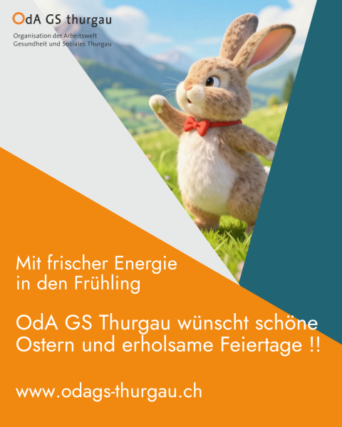 Wenn die ersten Blumen blühen, die Tage heller werden und der Osterhase leise vorbeihoppelt, ist es Zeit, innezuhalten und neue Energie zu tanken. Die OdA GS Thurgau wünscht Ihnen ein Osterfest voller kleiner Freuden, sonniger Momente und frischer Inspiration – beruflich wie privat. Mögen Zuversicht, Gesundheit und viele schöne Begegnungen Sie durch den Frühling begleiten. Herzliche Ostergrüsse OdA GS Thurgau